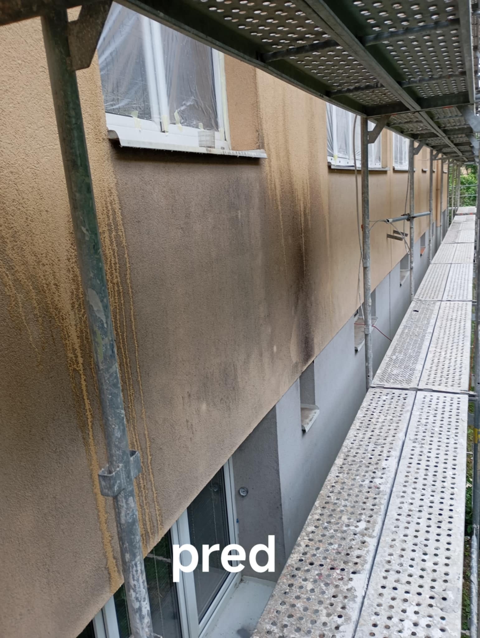 Na základě znaleckého posudku přistupujeme k chemickému očištění a následnému nátěru fasád. Pro odstranění plísní a mikrobiálního znečištění je nezbytné použít speciální chemické prostředky určené pro profesionální čištění fasád, které garantují účinnost a dlouhodobý efekt. Tyto přípravky odstraní jak organické (plísně, řasy, lišejníky), tak anorganické nečistoty (saze, prach, mastnota). Po očištění bude aplikován fasádní nátěr s obsahem účinných biocidů, což zajišťuje preventivní ochranu proti opětovnému výskytu plísní a prodlužuje životnost fasády.