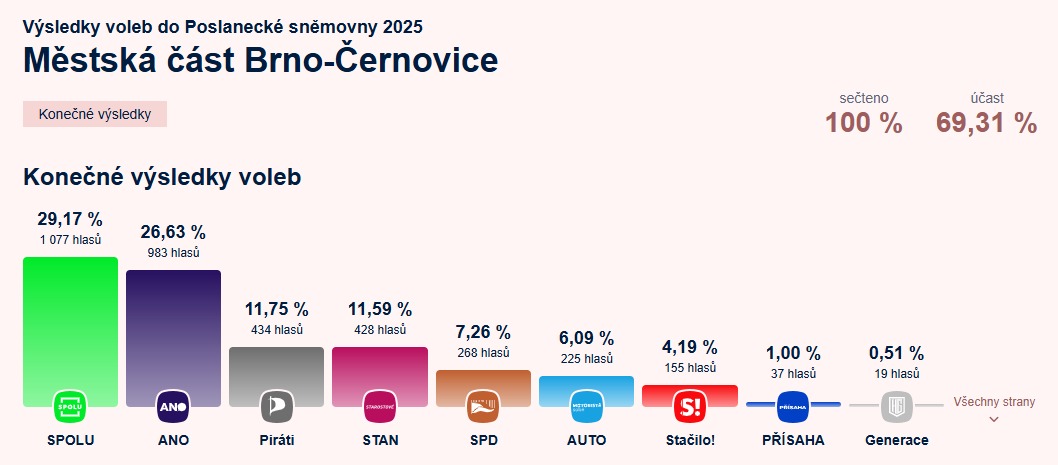 Výsledky voleb do Poslanecké sněmovny v městské části Brno-Černovice